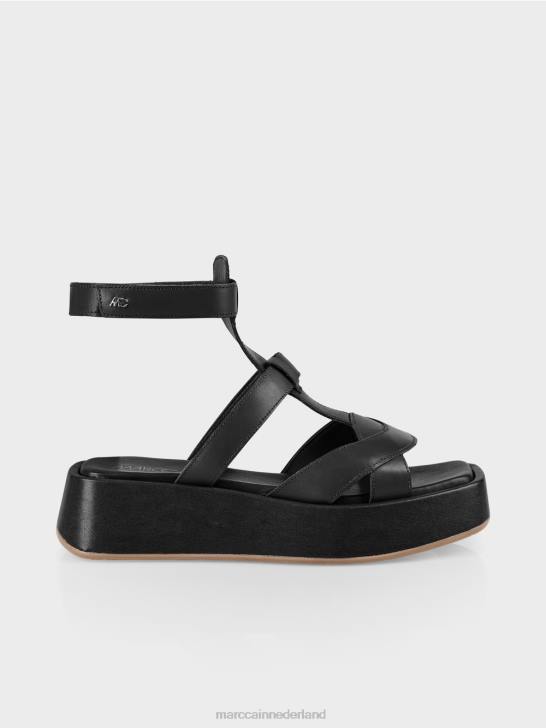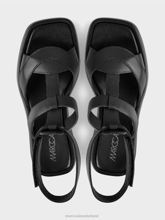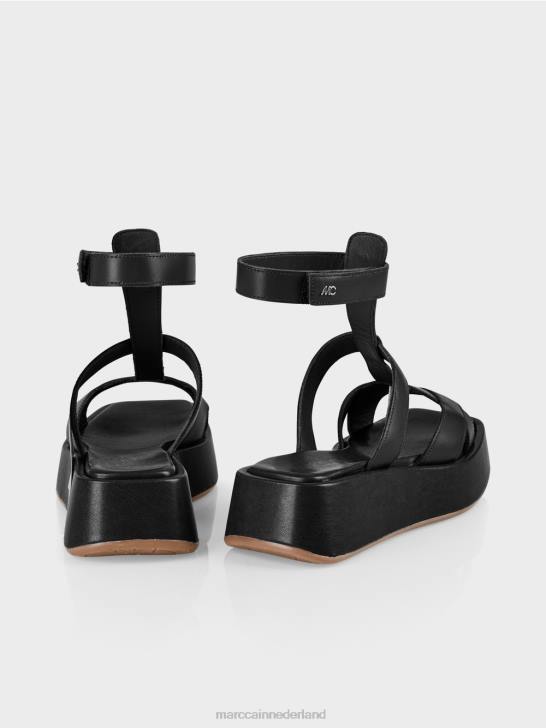 vierkante sandalen met zachte binnenzool. deze sandalen met enkelbandjes en platformzolen zorgen voor een stijlvolle look. de buitenlijn is vierkant van vorm bij de teen en hiel en wordt gekenmerkt door brede bandjes met afgeronde details.