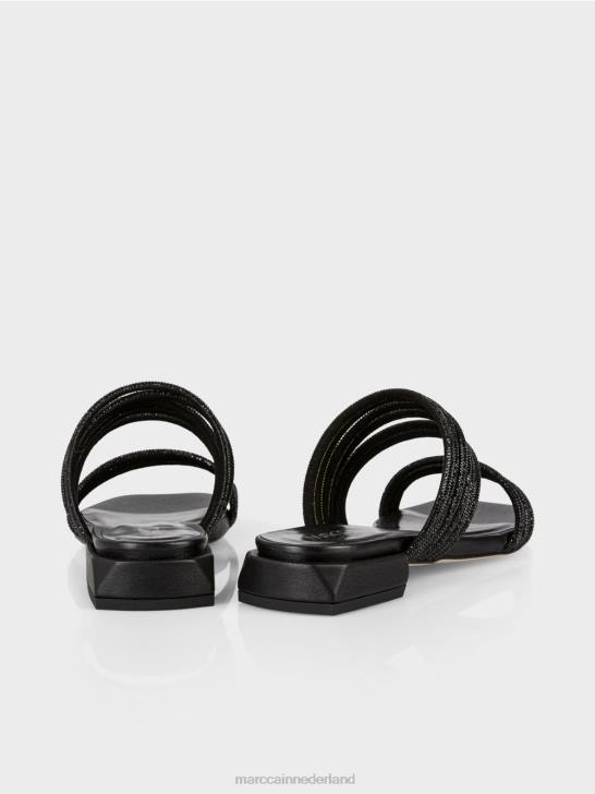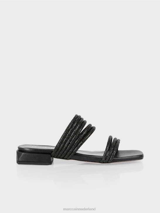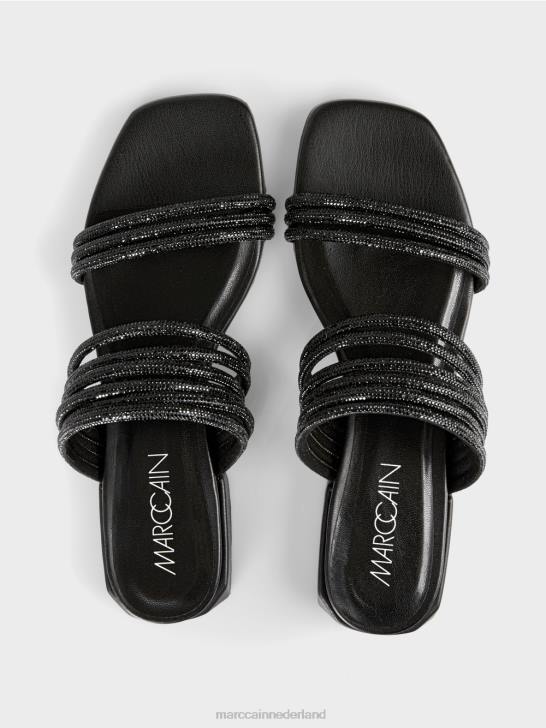platte sandalen met vierkante neus en afgeronde hak. Deze bandsandalen zijn voorzien van glanzende glazen paillettendetails en zijn tegelijkertijd comfortabel en elegant. de binnenzool scoort hoog door zijn comfortabele vulling, terwijl de kleine hak een hoogwaardige afwerking heeft.