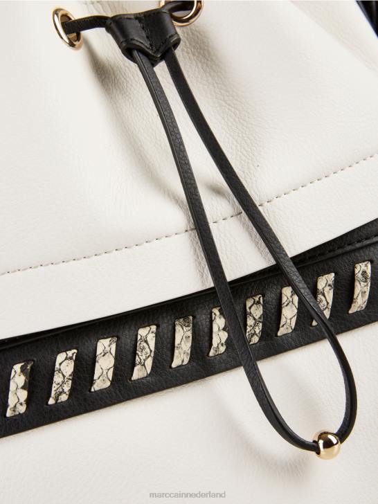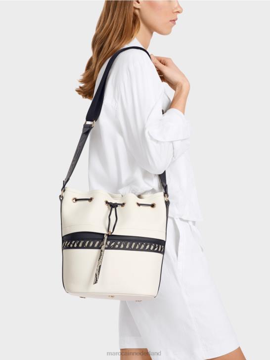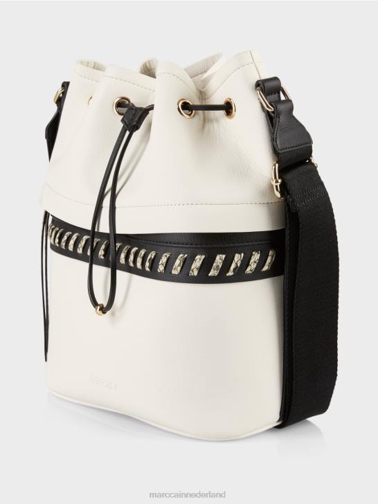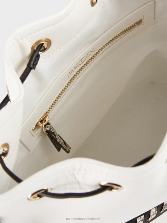 speelse bucketbag met subtiele krokodillendetails. Deze bucketbag is slim ontworpen om de ideale opbergruimte voor elk item te bieden. Hij heeft een verborgen ritsvak aan de buitenkant en een afsluitbaar vak aan de binnenkant. speelse details zoals een trekkoord met kralenstopper en marc cain-opschrift op de verstelbare schouderband zorgen voor een onderscheidende touch. zelfs de drie poten zijn stijlvol en voorzien van een metallic 3D-luipaardkopontwerp.