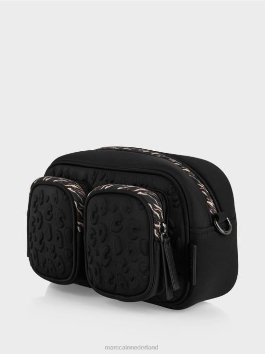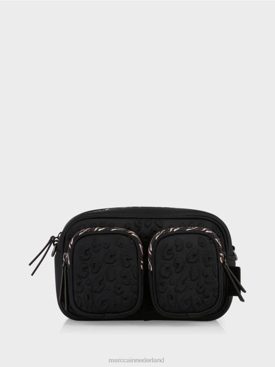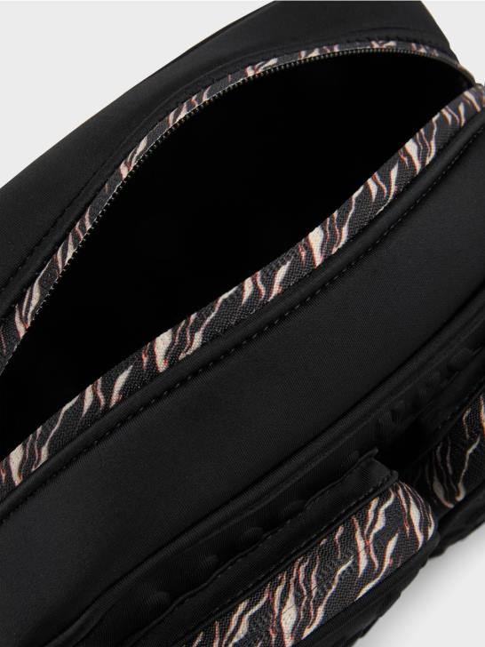 de schoudertas heeft een kubusvormige vorm met ronde hoeken. aan de voorzijde bevinden zich twee patchvakken. alle compartimenten van de tas openen met een leo-design ritssluiting. het technische materiaal heeft een reliëfpatroon. Decoratief is ook de bedrukte schouderband, gemaakt van robuust textiel.