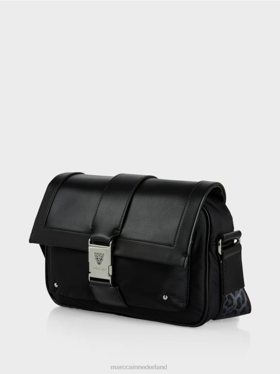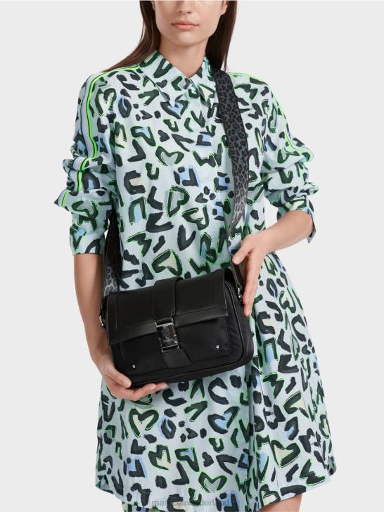 de schoudertas heeft een kubusvormige vorm met afgeronde hoeken. de sluiting is gebaseerd op een zakflap en een kliksluiting. Dankzij twee binnenzakken en een vak aan de voorkant kan de inhoud overzichtelijk worden geordend. de eyecatcher is de bedrukte schouderband, die gemaakt is van een robuust textielweefsel.