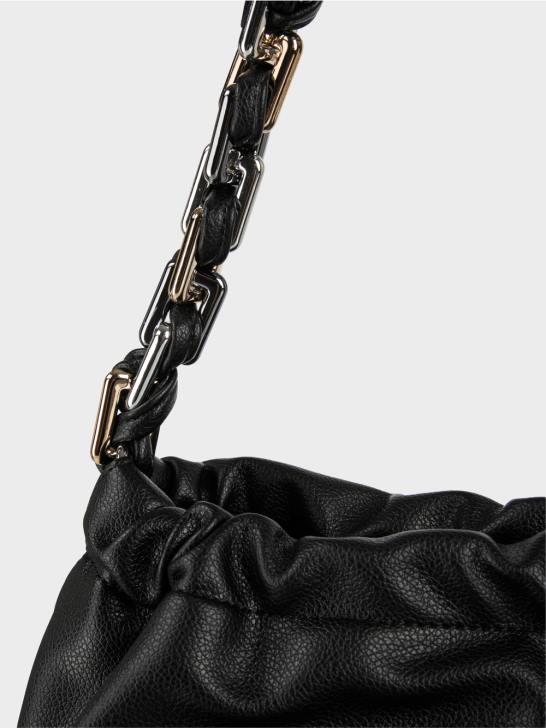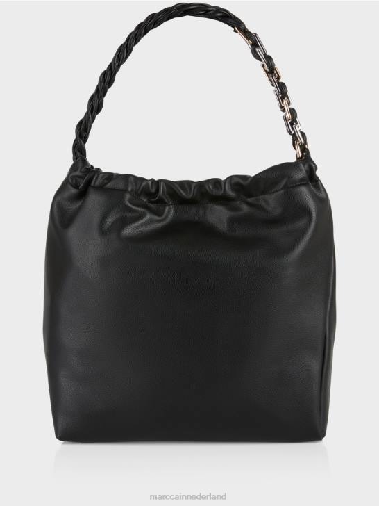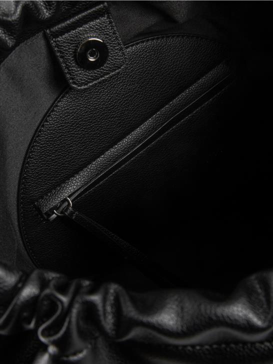 de shopper is relatief hoog en heeft een brede basis. het biedt voldoende ruimte om te winkelen. Hij is gevoerd met katoen en heeft een binnenvak met ritssluiting. het kan worden vastgemaakt met een magnetische sluiting. de onderkant van de tas wordt beschermd door metalen voetjes. een decoratief element is het handvat, dat als een touwtje is gedraaid. een deel van het handvat bestaat uit een metalen ketting waar doorheen een koord is gevlochten.